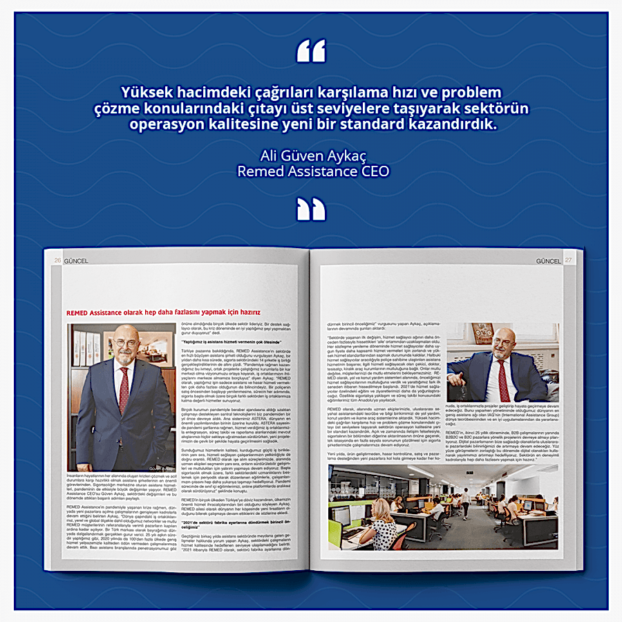 İnsanların hayatlarının her alanında oluşan krizleri çözmek ve acil durumlara karşı hazırlıklı olmak asistans şirketinin en önemli görevlerinden. Sigortacılığın merkezine oturan asistans hizmetleri, pandeminin de etkisiyle büyük değişimler yaşıyor. REMED Assistance CEO’su Güven Aykaç, sektördeki değişimleri ve bu dönemde attıkları başarılı adımları paylaştı.